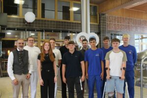 Dr. Stefan Kreisz, Vorsitzender der Geschäftsführung der Privatbrauerei ERDINGER Weißbräu, freut sich über die neuen Auszubildenden: Michael Bruckmaier, Sofie Laurent, Finn Heidenreich, David Wilhelm, Manuel Grichtmair, Niklas Greiling, Sebastian Kressirer, Daniel Grüneberg, Alexander Gaigl, Maximilian Schmidt (v. l. n. r.)