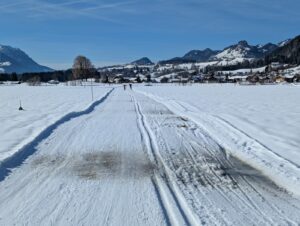 Nachdem ich vorgestern auf den Loipen in Sachrang unterwegs war, zog es mich heute nach Reit im Winkl. Der Langlauf war dort allerdings nur eingeschränkt ein Vergnügen: Um die Mittagszeit war die Spur noch sehr hart und stellenweise eisig. Entsprechend wenig klassische Langläufer waren unterwegs. Lediglich einige sportliche Skater zogen zügig ihre Bahnen – für sie waren die Bedingungen ideal.