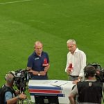 Warum merkten wir schnell, als wir gleich unter uns ORF-Chefanalytiker Herbert Prohaska und Moderator Rainer Pariasek am Spielfeldrand sahen. Das Spiel wurde in ORF 1 live übertragen! So waren “nur” 11.156 Zuschauern in der Arena, aber diese hatten ihr Kommen nicht zu bereuen, denn der Titelverteidiger zeigte keine Schwächen und startete mit einem klaren 3 :0 Sieg gegen die Wiener “Veilchen” erfolgreich in die neue Saison. Dabei begeisterte der dribbelstarke, superschnelle und schussstarke Neuzugang Fernando dos Santos die Zuschauer bei seinem Bundesliga-Debut mit einem Traumtor.