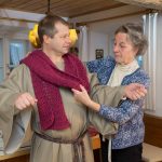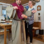 Es werden an die 150 Mitwirkende, Helfer, Beteiligte oder freiwillige Kräfte sein, die seit Oktober 2018 einen Teil ihrer Freizeit für die Verwirklichung des Projektes „Das Aschauer Heilige Grab“ opfern. Ausgenommen vielleicht die Autoren, Julia und Werner Hofmann, hat aber eine Aschauerin seit mehr als einem Jahr im wahrsten Sinne des Wortes alle Hände voll zu tun. Sie ist eine der meist „unsichtbaren Geister“, die ein solches Vorhaben, wie es die beiden für das Frühjahr 2019 geplanten Aschauer Auferstehungsspiele sind, ermöglichen. So schneidert die gelernte, früher einmal selbständige Trachtenschneiderin Gisa Obermaier, daheim in ihrem Wohnzimmer ein Kostüm nach dem anderen für die rund 60 Schauspieler. Die Vorlagen dazu hat sie sich vom ersten Aschauer Auferstehungsspiel des Heimat- und Geschichtsvereins 2005 aufgehoben. Damals stammten die Kleider überwiegend aus dem Fundus der Erler Passionsspiele. Da jedoch in Erl für 2019 wieder die Passion ansteht, griff Gisa einfach zur Selbsthilfe. „Wenn i früah gnua ofang, nacha schaff i des scho!“ entgegnete sie den Zweiflern. Und tatsächlich, dieser Tage nähte sie das „Gwand“ Nr. 57! Dazu kommen zu jedem Stück die – natürlich selbst und mit Unterstützung aus der näheren Verwandtschaft – gehäkelten großen Schal-Tücher.