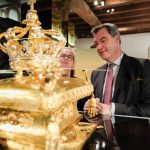 Die Sonderausstellung „Bayerns Gold“ ist hier in der Kaiserburg goldrichtig. Eine einzigartige Ausstellung – die ganze Geschichte von Bayerns Gold anschaulich präsentiert in einem großen Goldbarren“, sagte Ministerpräsident Dr. Markus Söder anlässlich der feierlichen Eröffnung der Sonderausstellung „Bayerns Gold“ im Hochzeitszimmer der Kaiserburg Nürnberg. „Die Kaiserburg Nürnberg ist eine Schatztruhe, prall gefüllt mit Kunst und Kultur, die nun bis zum Herbst 2018 besonders glänzt“, so Söder weiter.