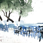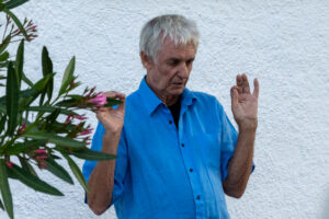 Christian Eckerl zeigt mir dann eine umfangreiche Bildergalerie auf seinem Notebook. Besonders viel bedeutet ihm das Bild “Schafe”, das er so gerne mag, dass er es nicht verkauft. Auch seine Bilder mit Stühlen mag er ganz besonders. Seit er in Kreta eine Ansammlung von kompliziert aufgestapelten Stühlen entdeckt hat und diese aus allen Perspektiven gemalt hat, malt er immer wieder Stuhlbilder. Ich darf dann Bilder für meinen Beitrag auswählen, die er gleich in einen Ordner schiebt und mir per Mail zuschickt. Es ist allerdings nicht ganz einfach bei der Vielzahl bildgewordener Seherlebnisse des Künstlers einen repräsentativen Querschnitt durch das Werk des Künstlers zu finden.