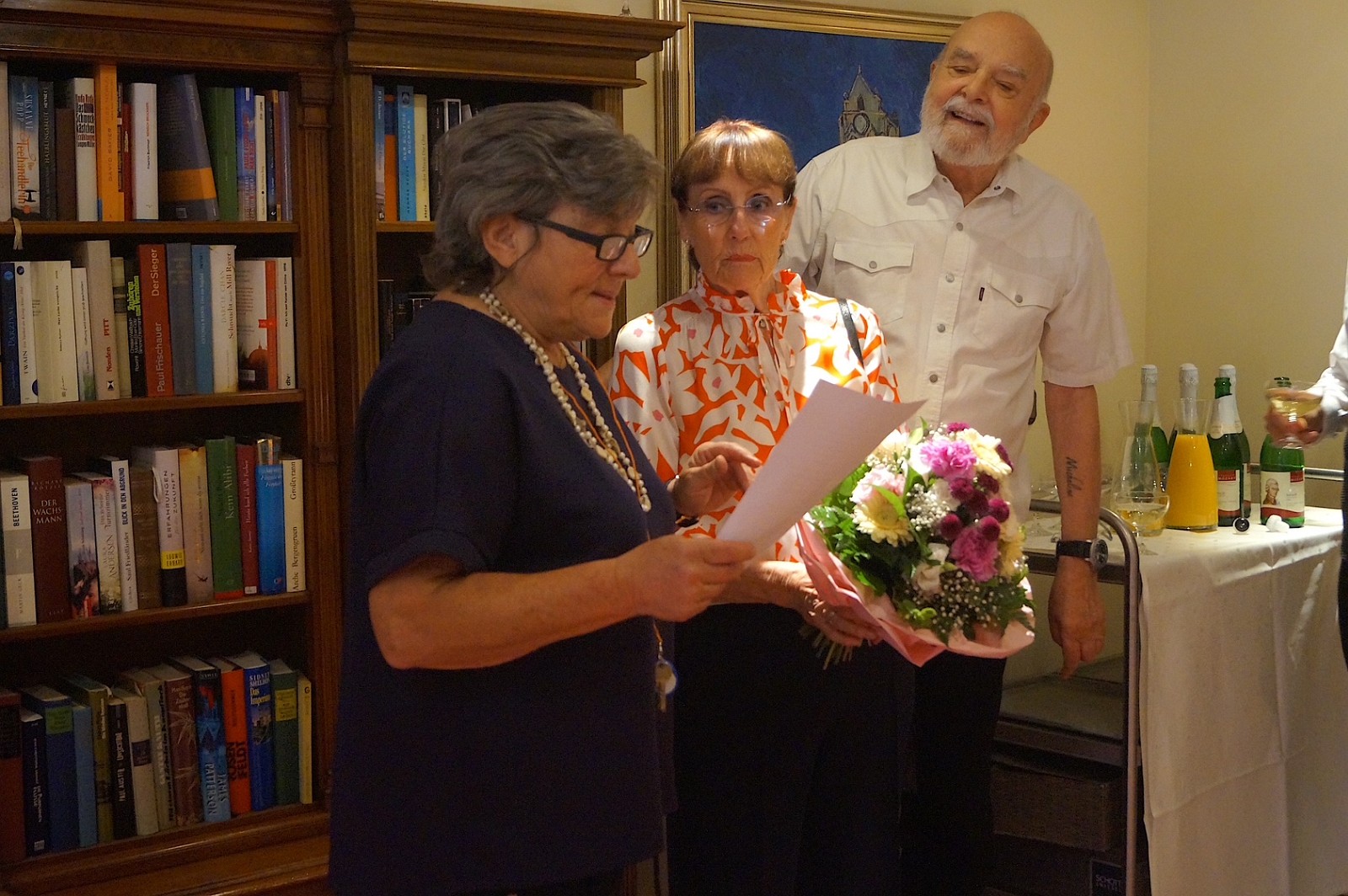 Kulturreferentin Carla Steininger spricht die Laudatio für Anne Kahlen und stellt Volker Herbst vor.