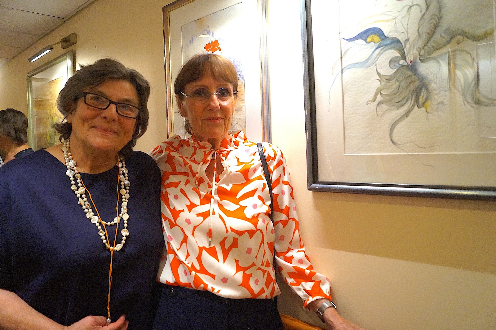 Carla Steininger mit der Künstlerin Anne Kahlen (rechts) vor ihren Aquarellen.
