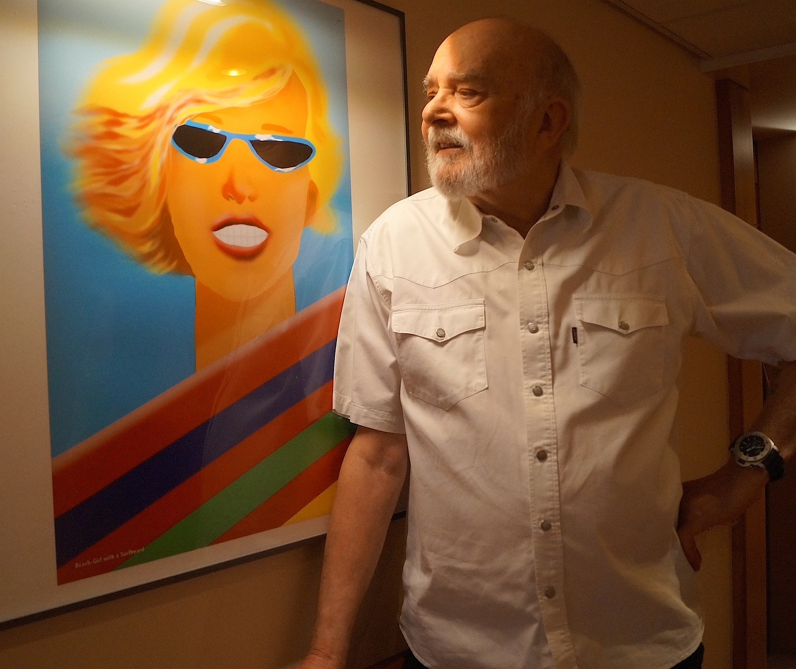 Volker Herbst vor der Blonden mit Sonnenbrille („Beachgirl with a Surfboard“)