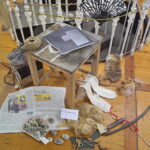 Zwei Künstler aus der Region, Maite Schmidt und Ewald Seemayer sind die Kuratoren der Ausstellung „Hommage à …“ in der Berchtoldvilla, die noch bis 15. Juni zu sehen ist. Außer ihnen stellen 18 weiter Künstlerinnen und Künstler ihre Werke zum Thema „Hommage“ aus. Sie stellen Fragen und geben manchmal auch Antworten auf die Frage, wen wir verehren, wer oder was uns beeinflusst, wem wir im Leben unsere Aufmerksamkeit schenken. Für Maite Schmidt ist dies Antoni Tàpies. Mit ihm fühlt sie sich seelenverwandt. Ihre ausgestellten Werke sind zum Teil Installationen, die als Titel Zitate von Tàpies haben, wie zum Beispiel „der Künstler als wunderlicher Außenseiter“ oder „als Randfigur“. Ihn stellt sie als alten Besen in eine Ecke. Augenzwinkerndes Schmunzeln, Ironie oder Sarkasmus? Oder sie führt einen “Kampf gegen den Zeitgeschmack“. „Der Schmerz einer starken, vitalen Erfahrung“ stehe immer am Anfang einer künstlerischen Berufung. Dieser Erfahrung wird sie mit ihren Installationen mit Gegenständen gerecht, die symbolisch zu ihrem Leben ebenso wie zu Tàpies passen. „Beginnt stumpfes Material zu sprechen“ fragt sie und ordnet eine spanische Zeitung, Schnüre, Socken, Haare, einen spanischen Fächer und Steine, auf denen japanische Schriftzeichen Wertvolles aus dem Leben beschreiben in einer Assemblage am Boden an. Alles gruppiert sich um einen alten Hocker voll Patina, auf dem Kataloge zu ihrer Kunst auf dem weißen „M“ ihres Namens „Maite“ liegen – eine Ableitung des spanischen Namens Marie-Therese, wie sie erzählt. Japanische Schriftzeichen finden sich auch in der Abbildung von japanischen Haiku-Gedichten, deren philosophisch-lyrische Inhalte poetisch verdichten, was die Künstlerin der bildenden Kunst als Philosophin denkt und zum Ausdruck bringt – die gleiche Botschaft mit unterschiedlichen Mitteln.