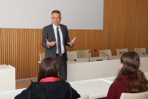 Landrat Otto Lederer begrüßte die Gäste aus Australien mit ihren Begleitlehrerinnen und die Schülerinnen und Schüler der Wirtschaftsschule Alpenland im Landratsamt Rosenheim. Foto: Landratsamt Rosenheim