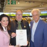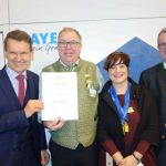 Bereits zum dritten Male konnte Entenwirt Peter Schrödl vom Samerberg vom Bayerischen Landwirtschaftsministerium die Urkunde für „Ausgezeichnete Bayerische Küche“ in Empfang nehmen. Die Auszeichnung für ideenreiche und regionale Wirtshauskultur erfolgte während der Internationalen Grünen Woche in Berlin. Dort ist Peter Schrödl seit zehn Jahren Betreiber des Biergartens in der Bayernhalle. „Unsere Wirtshäuser sind wichtige Botschafter der bayerischen Lebensart und ein Schaufenster unserer regionalen Genüsse und hier in Berlin findet das große Anerkennung“ – so die Bayerische Landwirtschaft- und Ernährungs-Ministerin Michaela Kaniber zum Entenwirt. Zu den ersten Gratulanten gehörte auch der Bundestags-Abgeordnete Peter Ramsauer. Unsere Aufnahme zeigt ihn mit Staatsministerin Michaela Kaniber und mit dem ausgezeichneten Entenwirt.