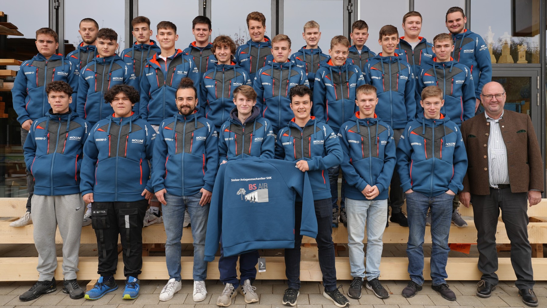 OStR Folger Helmut (l.h.), FOL Wuttig Heinz (l.v.), OStR Rier Josef (r.h.), OStR Wolf Florian (r.2.r.) Obermeister Gerhard Hardrath (2. v. r.) und OStD Jürgen Ersing (r.)