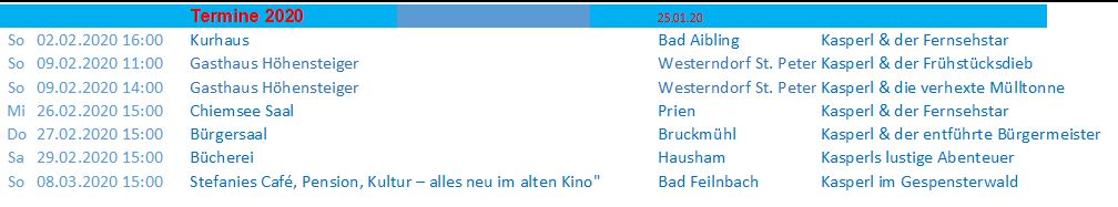 Die Besucher werden um rechtzeitiges Erscheinen gebeten. Aus organisatorischen Gründen kann kein Zusatztermin angeboten werden. Allerdings gibt’s weitere Kasperlvorstellungen in der Region: