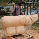 Nicht nur im Oberland bei Ettal – auch in Aschau ist der Bär los. Beim Aschauer Bildhauer Christian Huba wartet der Bär darauf, dass er aus seiner vielhundertjährigen Gefangenschaft im Baumstamm befreit wird und ein Plätzchen zum Ausrasten auf einem Spielplatz irgendwo in Bayern findet.