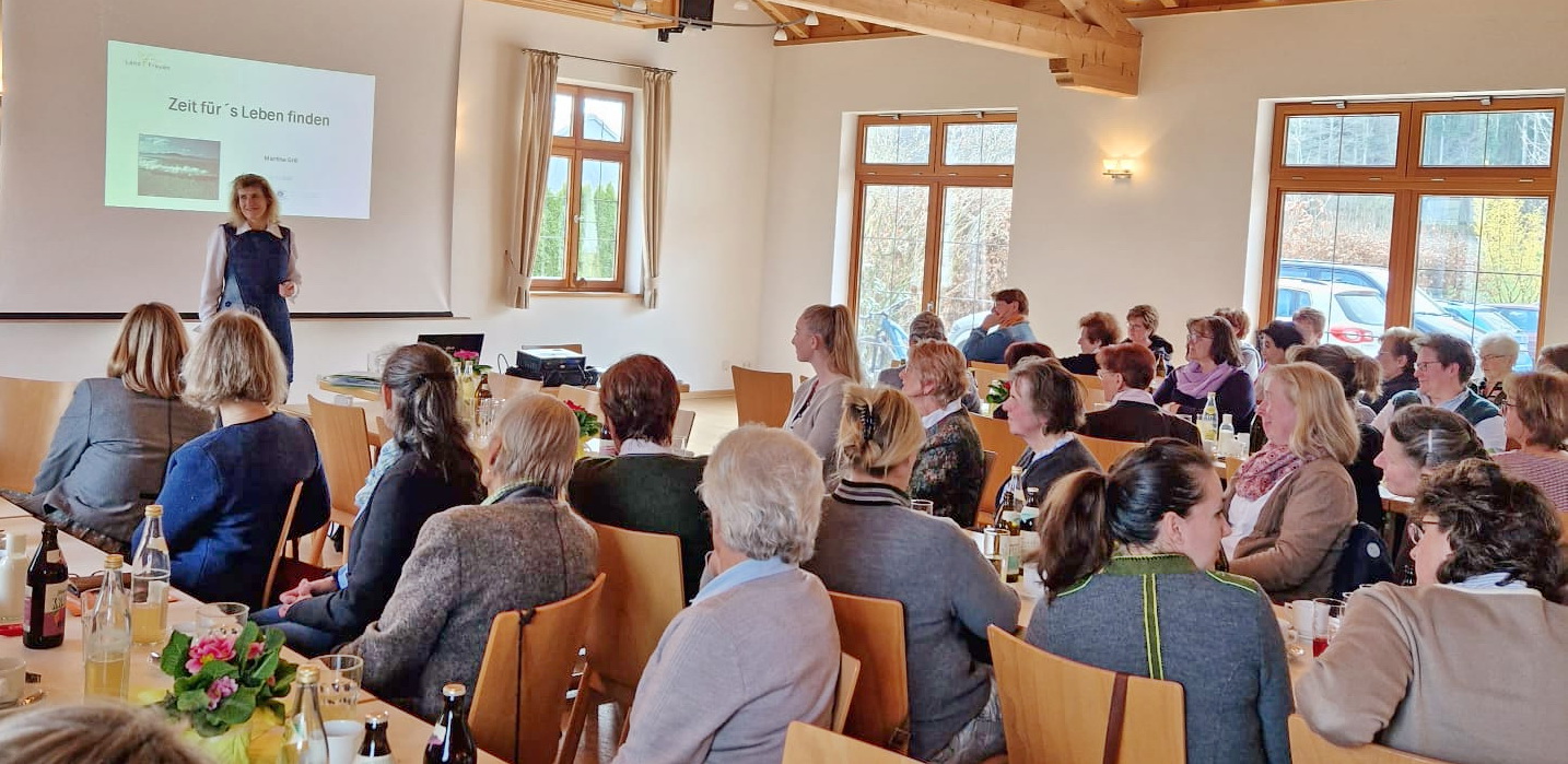 Frei nach Astrid Lindgren´s Lebenseinstellung „Ich mach mir die Welt, wie sie mir gefällt“ begann Referentin Martina Grill aus Fürstenfeldbruck mit ihrem Vortrag wie folgt: „Der Arbeitsalltag birgt Heraus- und Anforderungen, die uns stark fordern und manchmal auch überfordern. Einzelsituationen lassen sich auffangen, aber unter dauerndem Druck leidet alles: die Motivation, die Widerstandsfähigkeit, die Gesundheit und die Leistungsfähigkeit. Wie komplexe Anforderungen zu bewältigen, strategisch denken und handeln, Vorbild sein, Mitarbeitende motivieren, Aufgaben delegieren und Vertrauen schenken? Was kann ich tun, wenn Druck, emotionale Belastung oder Dauerstress mich zunehmend fordern? Wie kann ich meine Energie und Kräfte so einteilen, dass eine gute Balance von Job-Zeit, Familien-Zeit und Ich-Zeit möglich ist?“ – auf diese grundsätzlichen und nicht seltenen Belastungssituationen gab es unter anderem folgende Antworten von der aktiven Ackerbäuerin: „Im Kern das Wichtigste ist, das für Dich Richtige zu tun, denn alles was man tut, hat mit einem selber zu tun. Ebenso notwendig ist es, Zeit für nicht vorhersehbare Dinge einzuplanen und zu haben und ein Gespür für persönliches Gleichgewicht zu entwickeln. Sich Notizen für Vorrangiges zu machen gehört ebenso dazu wie für Leistungen, die man gegenüber Anderen ausserhalb der Familie bringt, etwas zu verlangen“.