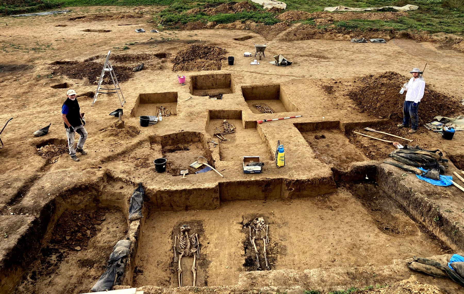 Ein Teil des bajuwarischen Friedhofs von Bayerbach während der Ausgrabung (Foto: Landratsamt Landshut, Kreisarchäologie, Th. Richter).