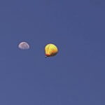 Begegnung auf hoher Höhe oder der Ballonflug zum Mond – Zu einer seltenen Begegnung kam es an diesem Donnerstagmorgen hoch über der Marktgemeinde Prien a. Chiemee. Ein in der Früh gestarteter Heißluftballon machte sich auf in Richtung Mond, der sich noch nicht ganz von seiner nächtlichen Tour verabschiedet hatte.