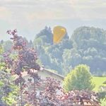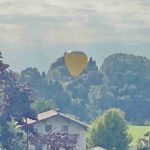 Am Sonntagmorgen landete ein weithin sichtbarer Heißluftballon nahe Prien-Bauernberg – wie unsere Bilder aus dem Nachbarort Prutdorf zeigen, setzte sich der Ballon mit seiner Mannschaft ganz gemächlich nieder.