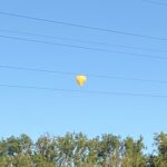 Wie diese Aufnahmen aus der Nachbarortschaft Prutdorf zeigen, schwebte der gelbe Ballon an der Kirche vorbei.
