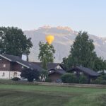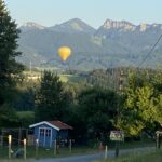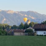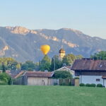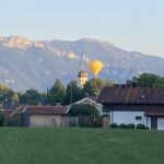 Mit heißer Luft an einem lauen Sommerabend wagte sich ein Ballon bei seiner Fahrt entlang der Chiemgauer Alpen in die Nähe der Wildenwarter Pfarrkirche „Christkönig“.