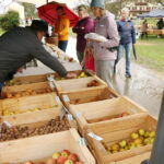 Der Obst- und Gartenbauverein presste vor Ort frischen Apfelsaft, während Kaffee, Kuchen und Getränke rund um das Haus angeboten wurden. Ausgewählte handwerkliche Arbeiten rundeten das Marktgeschehen ab. Obwohl der einsetzende Regen störend war, verwandelte sich der Tag dank guter Ausrüstung dennoch in einen richtigen Familientag, geprägt von Unterhaltung und geselliger “Ratscherei”. Der Markt hat seit Jahren ein treues Publikum.