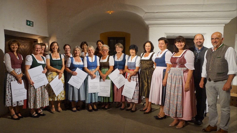 Die Ortsbäuerinnen, die nach fünf oder zehn Jahren im Amt ausschieden, wurden von Bezirkspräsident Ralf Huber, Kreisobmann Josef Andres, stellvertretende Bezirksbäuerin Elisabeth Mayerhofer, stellvertretende Kreisbäuerin Maria Fischbacher und Kreisbäuerin Katharina Kern (v. re. na. li.) verabschiedet.