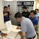 Am Ende der Veranstaltung hinterließen Herr Lederer und Vizekanzler Wang noch ein paar schriftliche Grußworte im Jubiläumsbuch anlässlich des 70. Geburtstages der Bildungseinrichtung.
