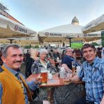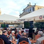 Zur Vorbereitung der Gespräche traf man sich am Vorabend im Biergarten des Erdinger Wirtshauses am Gendarmenmarkt mit Vertretern und Freunden des bayerischen Brauchtums in der Bundeshauptstadt. Mit zur Runde zählten der Erdinger-Bayernstammtisch mit Franz Schuhbauer, der Vorsitzende vom Verein der Bayern in Berlin, Helmut Amberger, sowie das „Fremdenführerteam Hartfiel“, Tina & Manfred & Micha. Es war eine Atmosphäre der Erleichterung, nach nahezu eineinhalb Jahren der Corona-Beschränkungen wieder offen zusammenzukommen, dazu bei schönstem Sommerwetter, auf dem schönsten Platz von Berlin, mit kühlem Erdinger Weißbier und einer deftigen bayerischen Brotzeit.