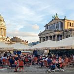 Auf Monitoren konnte auf der Terrasse des Französischen Doms das EM-Auftaktspiel der deutschen Nationalmannschaft gegen Frankreich unter freiem Himmel verfolgt werden. Auch wenn der Auftakt der Deutschen unglücklich in einer Niederlage endete, so tat diese dem stimmungsvollem Abend keinen Abbruch. Schließlich stehen ja noch zwei Spiele aus, um das Blatt zu wenden.