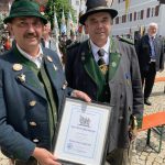 Neubeuern – Die seltene Auszeichnung „Presse-Löwe“ des Bundes der Bayerischen Gebirgsschützen hat Landeshauptmann Martin Haberfellner beim 36. Bataillonsfest des Inn-Chiemgaus in Neubeuern an Anton Hötzelsperger verliehen. Der Pressesprecher des Bayerischen Trachtenverbandes, Redakteur der Samerberger Nachrichten und freie Journalist erhielt die Nadel und Urkunde in Würdigung für die langjährige und gute Zusammenarbeit. „Wie wir uns in der Öffentlichkeit zeigen, das liegt an uns selbst, wie aber über uns berichtet wird, das liegt bei Dir in guten Händen“ – so der Landeshauptmann bei der Ehrung in Neubeuern.
