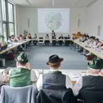 Im WWK-Forum von Obermühl in der Gemeinde Raubling im Landkreis Rosenheim sind die Mitglieder des Landesausschusses vom Bayerischen Trachtenverband zusammengekommen, um zwei Tage lang weitere Abstimmungen und Planungen für die heimatliche Kulturarbeit in Bayern vorzunehmen. Die Gauvorstände der 22 Gauverbände, die Sachgebietsleiter und die Ehrenmitglieder des Bayerischen Trachtenverbandes erörtern sich unter der Leitung von Landesvorsitzenden Max Bertl, dem im Rahmen der Tagung zum 74. Geburtstag gratuliert werden konnte. Landesschriftführerin Hildegard Hoffmann überreichte namens der für die Tracht in Bayern Verantwortlichen ein Glas Bienenhonig und wünschte damit weiterhin gute Gesundheit.