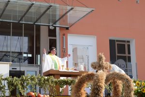 Eröffnet wird das Erntedankfest mit einem besonderen Festgottesdienst auf dem Kurplatz, gestaltet von Pfarrer Marcus Lautenbacher und musikalisch begleitet von der Blaskapelle Bad Gögging. Fotograf © Tourist-Information Bad Gögging | Zitzelsberger