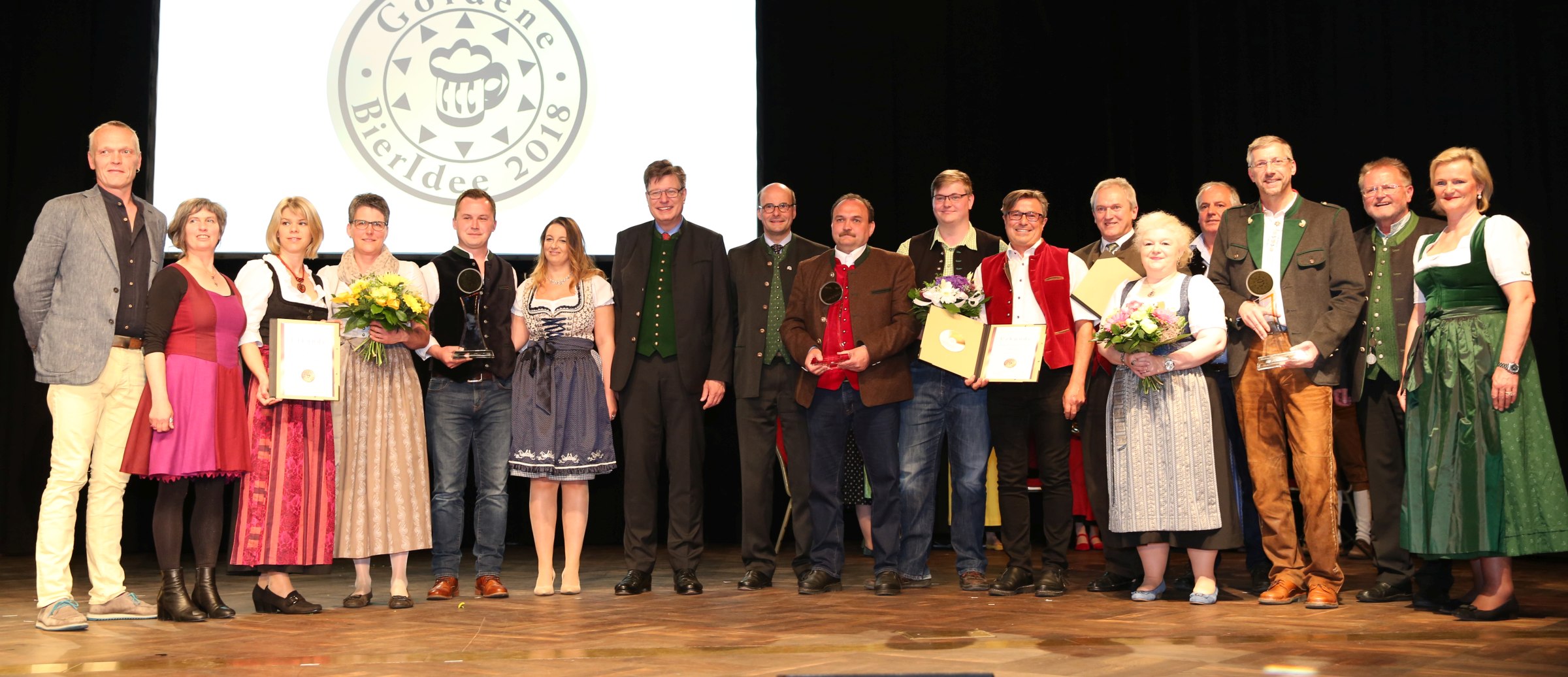 Die Gewinner der Goldene BierIdee 2018 mit den Laudatoren Angela Inselkammer, Georg Schneider und Dr. Lothar Ebbertz