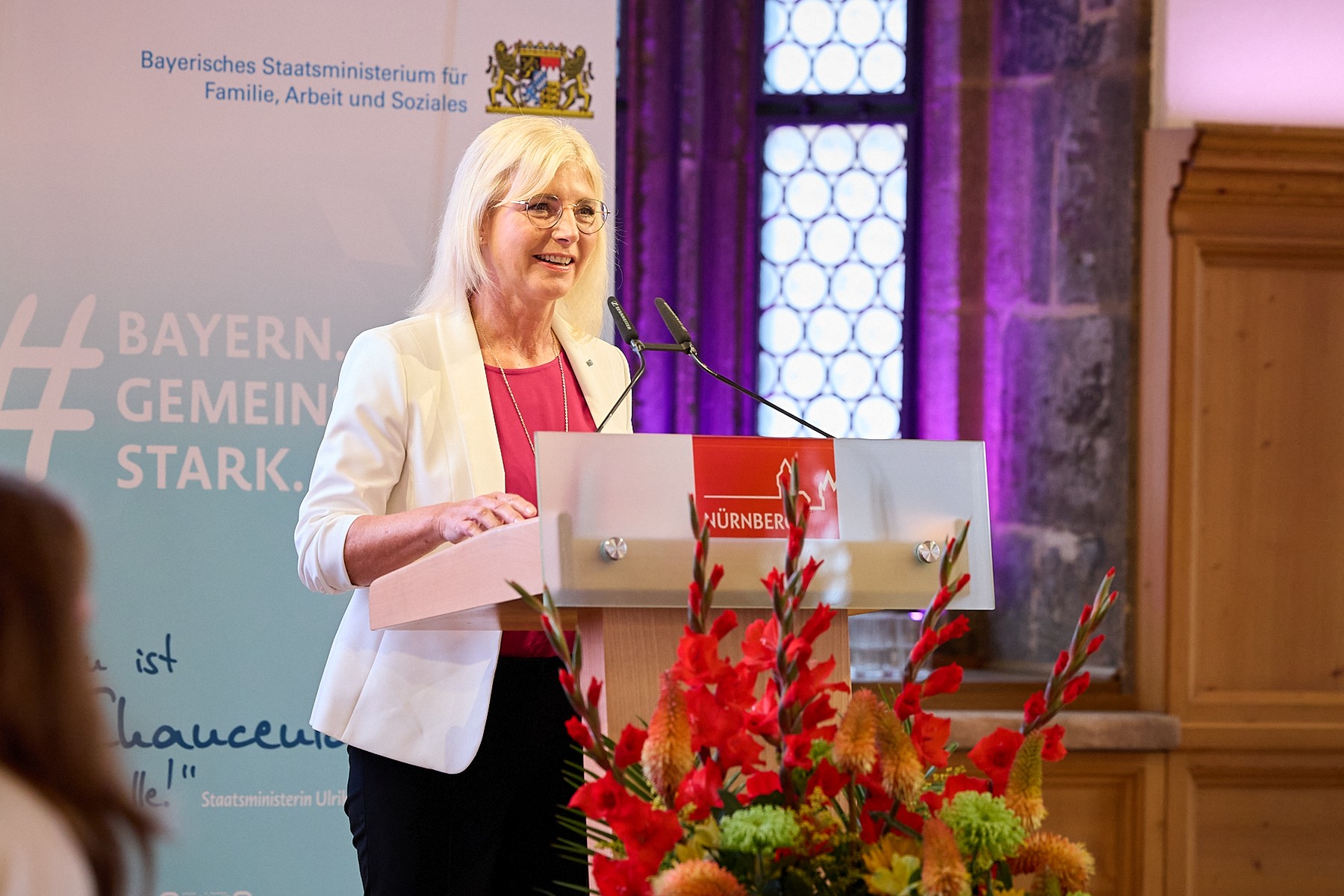 Familienministerin Ulrike Scharf beim Festakt zum zehnjährigen Bestehen der Familienstützpunkte.