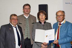von links: Imkereifachberater Arno Bruder, Michael Anderl, Betreuer der Bienen vom OGV (Obst- und Gartenbauverein), Mafria Liegl, 1. Vorsitzende des OGV von Nußdorf am Inn sowie Bezirkstagspräsident Josef Mederer