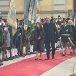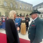 Unsere ersten Bilder zeigen Eindrücke vom Ehrenspalier des Bundes der Bayerischen Gebirgsschützen und des Bayerischen Trachtenverbandes mit ihren Fahnenabordnungen.