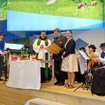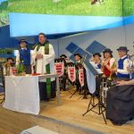 Fotos: Hötzelsperger – Pater Lukas Wirth vom Kloster Scheyern und Schnaitseer Musikanten bei ihrem Gottesdienst in den Berliner Messehallen.