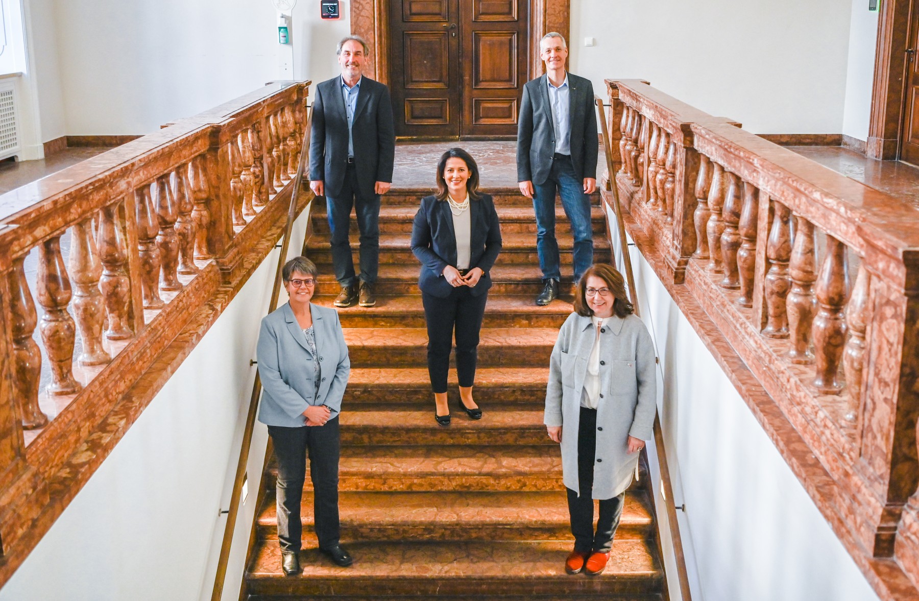 Ministerin Michaela Kaniber (M.) mit (im Uhrzeigersinn) Klaus Fackler, Nicolas Liebig, Tanja Schorer-Dremel und Beate Krettinger (l. u.).