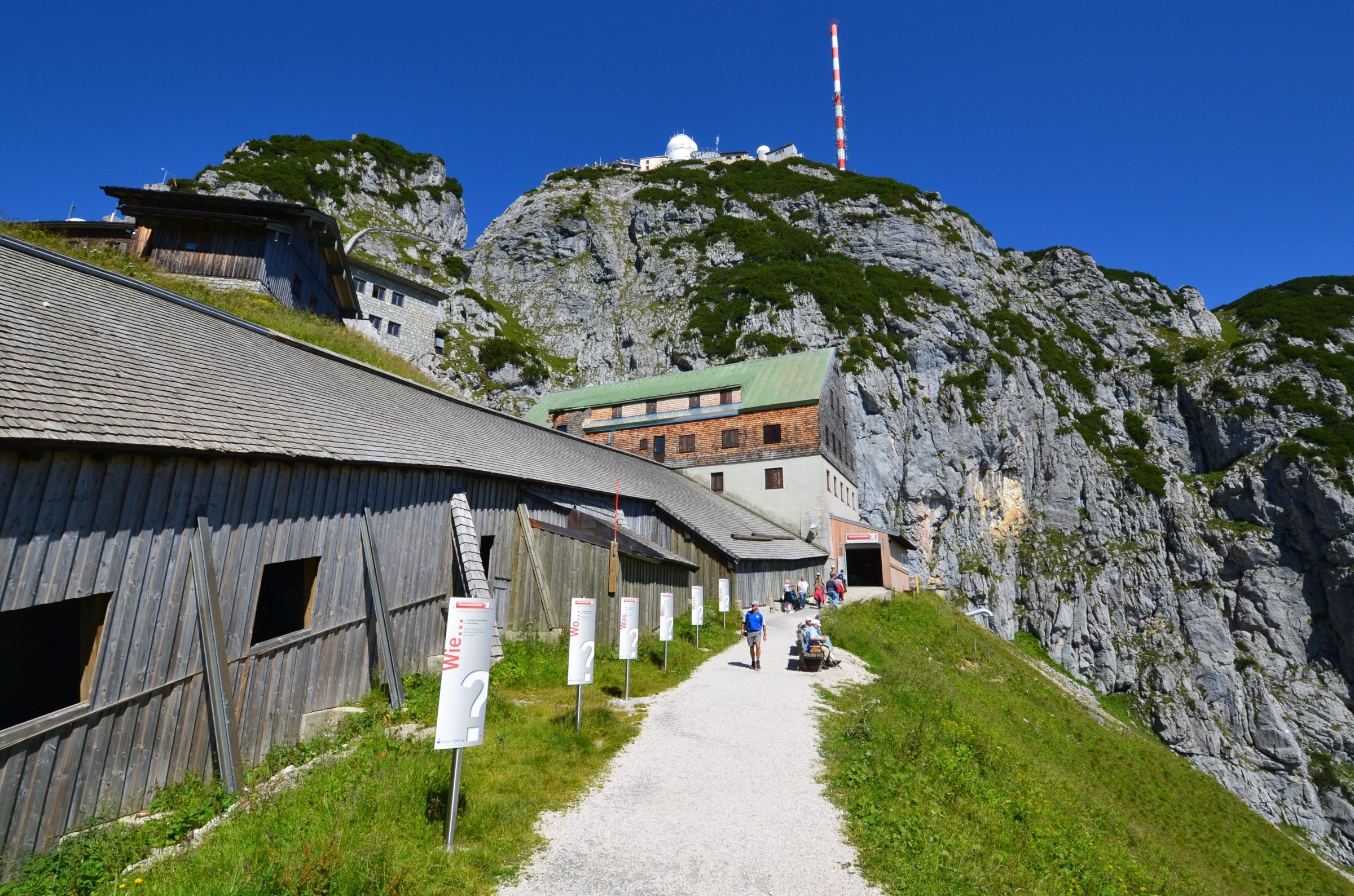 Der Fragenweg zum Höhleneingang am Wendelstein macht neugierig. (Foto: Peter Hofmann)