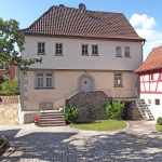 Das eine Bild zeigt Brebersdorf, Gemeinde Wasserlosen, Lkr. Schweinfurt. Das denkmalgeschützte Pfarrhaus mit Nebengebäude und Scheune wurde saniert und ist nun Wohnung für den Pfarrvikar. Die Scheue nutzt die Dorfgemeinschaft für Feierlichkeiten. Bild honorarfrei mit Angabe: Werbeagentur Dütschke.