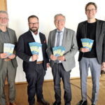 Bei der Vorstellung des Ausstellungskonzepts und Rahmenprogramms zur Bayernausstellung 2025 in der Zunftstube der Kramerzunft Memmingen v.l.n.r. Christoph Engelhard (Leiter Stadtarchiv Memmingen), Jan Rothenbacher (Oberbürgermeister Stadt Memmingen), Dr. Rainhard Riepertinger (stellvertretender Direktor Haus der Bayerischen Geschichte) und Dr. Fabian Fiederer (Projektleiter Bayernausstellung 2025).