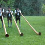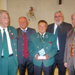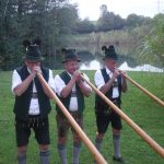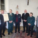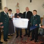 Der Haimat-Preis (die bairische Schreibweise wurde auf Anregung von Kreisverbands-Ehrenvorsitzenden Konrad Breitrainer angenommen) und nach einem Entwurf von Zweitem Kreisvorsitzenden Sepp Höfer aus Bad Feilnbach von Steinmetz Michael Finsterer aus Großholzhausen hergestellt, er zeigt eine hochgestellte bayerische Raute mit Rautenmuster. Die Verleihung erfolgte auf Entscheidung der Jury (Hans Berger, Roland Bräger, Oliver Döser, Otto Lederer, Christina Pfaffinger, Horst Rankl, Ferdinand Steinbacher, Klaus Stöttner, August Voit und Bayernbund Rosenheim) zugunsten des Vereins. Überreicht wurde der Preis an den kommissarischen Ersten Vorsitzenden Dieter Höpfner, seinen Vorgänger Hans Pumpfer sowie an die Nachwuchs-Ehrenamtlichen Florian Wittmann (Schriftführer) und Michael Vordermayer (Kassier). „Wir werden dem Preis alle Ehre machen“ – mit diesem Satz dankte Dieter Höpfner für die Auszeichnung und er versprach, den mit 1.000 Euro verbundenen Preis zugunsten der Friedens-Wallfahrt einzusetzen. Dieter Höpfners besonderer Dank galt Hans Pumpfer, den er als wunderbaren Menschen bezeichnete, der ebenso wie der weitere Sachranger Mitbürger und in Hartmannsberg anwesende Hansjörg Schellenberger vom Musik Forum Sachrang vor kurzem das Bundesverdienstkreuz erhielt. Der Preisverleihung folgte noch eine Einladung zum Stehempfang, dabei gab es kulinarische Genüsse dank des Entgegenkommens vom Kantinenwirt Bernard vom Landratsamt Rosenheim und der Brauereien Maxlrainer und Auerbräu. Für die musikalische Unterhaltung sorgten die von der Gemeinde Aschau entsandten Aschauer Alphornbläser mit Erich Gawlik, Anderl Pertl und Hans Bauer sowie Tobias Sporer mit Ziach und Sebastian Resch mit Bariton aus Oberaudorf. „Die Ölbergwallfahrt ist ein nachhaltiges, christliches Zeugnis für ein nachbarschaftliches Miteinander von Bayern und Tirol – und so möge es auch bleiben“ – so Laudator Sebastian Friesinger in seinen Ausführungen. Und der geehrte Verein mit Dieter Höpfner antwortete darauf: „Die Wallfahrt soll zeigen, dass wir ganz sicher Niemand ausgrenzen. Aber wir möchten auch nicht gezwungen werden, in einer anderen Werte-Ordnung zu leben, als in der, die wir auf der Basis unserer christlichen Werte empfinden und lieben“. Der Haimatpreis des Bayernbund-Kreisverbandes wird alle zwei Jahre verliehen. Die nächste öffentliche Veranstaltung des Bayernbundes ist am Sonntag, 28. Oktober ab 11 Uhr beim Gasthaus Vornberger in Altenbeuern ein volksmusikalischer Spaziergang zur Förderung von Kinderchören.