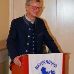 Dank – Landesvorsitzender Sebastian Friesinger bedankte sich bei den zahlreichen Delegierten, die trotz teilweise langer Anreise nach Abensberg gekommen waren und so ihre Verbundenheit zum Bayernbund dokumentierten. Sein Dank galt weiter den Mitgliedern des Landesvorstandes sowie des Landesbeirates und des Medienrates sowie Gaby Then von der Landesgeschäftsstelle für ihre Arbeit. Einen besonderen Dank richtete er an alle, die den Bayernbund durch Spenden und Zuschüsse unterstützen. Der Stellvertretende Landesvorsitzende Bürgermeister Christian Glas aus Eggstätt stellte noch kurz das Projekt des MundArt-Weges in seiner Region vor und dankte Sebastian Friesinger für deine Tätigkeit an der Spitze des Bayernbundes: „Du machst es gerne und gut, Du bist der beste Mann an der Spitze!“ Wie es die Tradition will, beschlossen die Delegierten die Landesversammlung mit der Bayern-Hymne. (Fritz Lutzenberger)