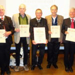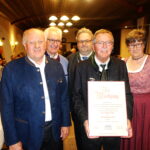 - Ehrung Sepp Höfer von links: Christian Glas, Manfred Karl, Norbert Zehrer, Ehrenmitglied Sepp Höfer, Sabine Karl.