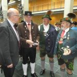 Beeindruckend und zutiefst nachdenklich stimmend waren die Besuche an der Gedenkstätte Berliner Mauer an der Bernauer Straße, im Haus der Wannsee-Konferenz sowie in der Erlebnisausstellung „Story of Berlin“ im Ku-Damm-Karree. Bei einem Vortrag durch Ersten Kriminalhauptkommissar Ingo Sorgatz im Bundesministerium des Innern, für Bau und Heimat, dem seit einigen Monaten Horst Seehofer aus Bayern voransteht, und bei einem Besuch des Reichstags waren die Trachtlerinnen und Trachtler hautnah mit der pulsierenden Politik in Berührung. Ausführlich und intensiv war ein Dialog, den die 46 Personen umfassende Trachtlerdelegation im Bundestag führte, mit dem Vorsitzenden der CSU-Landesgruppe im Deutschen Bundestag, Alexander Dobrindt und mit seinem Bundestagskollegen und ehemaligen Bürgermeister von Denklingen Michael Kießling aus Landsberg am Lech. Die neue Datenschutzverordnung, der Sonntags-Schutz, das Jugendschutz-Gesetz, das Weiterbildungs-Gesetz und die Ehrenamts-Pauschale waren einige der Themen, die dabei angesprochen wurden. Der Besuch im Bundestag und anschließend im Biergarten des Augustiner-Zollpackhofs nahe dem Bundeskanzleramt bot noch weitere Gelegenheiten zu persönlichen Gesprächen, unter anderem mit Entwicklungsminister Gerd Müller, mit den Abgeordneten Florian Hahn (München-Land), Florian Ossner (Landkreis Vilsbiburg mit dem Trachtenkulturzentrum Holzhausen), Peter Ramsauer (Traunstein und Berchtesgadener Land), Artur Auernhammer (Landkreis Weißenburg-Gunzenhausen) und Alexander Radwan aus Miesbach. Auch bei einem Besuch in der Bayerischen Landesvertretung kam es zu einem regen Meinungs- und Informationsaustausch zwischen den in Berlin und Bayern tätigen Leuten. Die Organisation der Reise erfolgte auf der Seite des Bayerischen Trachtenverbandes von stellvertretendem Landesvorsitzenden Erich Tahedl mit Unterstützung durch Landesschriftführerin Hildegard Hoffmann zusammen mit dem Büro von MdB Alexander Dobrindt. Die Betreuung der mit einem Bus der Firma Marx aus Fridolfing angereisten Trachtler in Berlin bei den Führungen lag in den Händen von Stadtführer Swen Götz. Landesvorsitzender Max Bertl zeigte sich ob des Gesehenen und Gehörten sehr zufrieden und er sagte: „Um Berlin, die deutsche Geschichte und die Politik insgesamt besser zu verstehen, kann ich nur eine solche Reise mit Besuchen der Gedenkstätten und Museen empfehlen“.