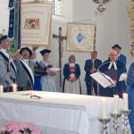 Pate stand bei dieser Weihe der Bayerische Blasmusikverband, der ebenfalls eine Ehrenstandarte in seinen Reihen hat. Weitere Ehren-Fahnenbänder für die Trachtler-Standarte kamen von Landes-Ehrenvorsitzenden Otto Dufter, gemeinschaftlich von den Gauverbänden, vom Bund der Österreichischen Heimat- und Trachtenverbände, vom Gauverband Nordamerika und vom Bayerischen Trachtenverband selbst (Trauerband). Die Weihe in der Pfarrkirche Holzhausen – mit musikalischer Gestaltung durch die Musikkapelle Wildsteig – vollzogen bei einem ökumenischen Wortgottesdienst Weihbischof Dr. Bernhard Haßlberger und Regionalbischof Dr. Hans-Martin Weiß. Die beiden Geistlichen bezeichneten dabei ebenso wie Trachtenverbands-Vorsitzender Max Bertl Fahnen und Standarten als Zeichen der Gemeinschaft und als Symbol dafür, dass man miteinander stark, einzeln aber zerbrechlich ist. Nach einem Festzug zurück zum Trachtenkulturzentrum wurde im dortigen Augustinerstadl bei einem Festakt mit vielen Ehrengästen gefeiert. Fähnrich für die neue Standarte ist Bernhard Wappmannsberger vom Trachtenverein Loisachthaler-Stamm aus München (Isargau), der von seinen Vereinskameraden Christoph Deuringer und Wolfgang Stolpe als Begleiter unterstützt wird. Zum Einsatz wird die Standarte bei weltlichen und kirchlichen Anlässen und Festlichkeiten kommen.