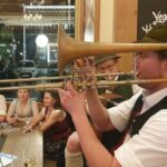 Es ist schon Tradition, dass man sich zum Abschluss der Grünen Woche zu einem gemütlichen Kehraus bei Maximilians, einem der renommiertesten Bayern-Wirtshäuser im Zentrum Berlins, trifft. Dieses Jahr hat sich die Gaugruppe vom Inngau Trachtenverband gleich nach ihren Auftritten in der Bayernhalle auf den Weg in die Berliner City gemacht. Aufgespielt haben die Anzwies Musi aus Atzing und die Brandseck Musi, die ebenfalls zuvor auf der Messe waren. Dazu gab es Alphorn-Einlagen vom Vorsitzenden des Vereins der Bayern in Berlin.