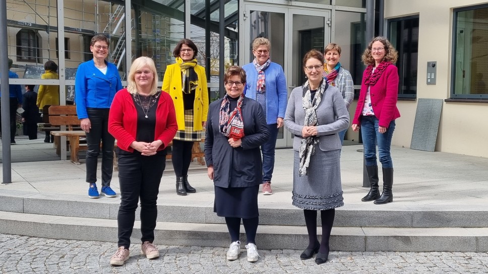 “Ein achtsamer Konsum hilft, dem Klimawandel und weiteren Hungersnöten entgegenzuwirken“: Der Landesvorstand der Landfrauen hat eine Position zum Thema “Klima und Ernährung” verabschiedet. Auf dem Bild vorne v.l.: Christine Reitelshöfer, 2. Stellv. Landesbäuerin, Anneliese Göller, Landesbäuerin, Christine Singer, Stellv. Landesbäuerin. Hintere Reihe v.l.: Die Bezirksbäuerinnen Maria Hoßmann, Unterfranken, Rita Blümel, Oberpfalz, Irene Waas, Niederbayern, Christian Ade, Schwaben , und Dr. Andrea Fuß, Geschäftsführerin der BBV-Landfrauengruppe.