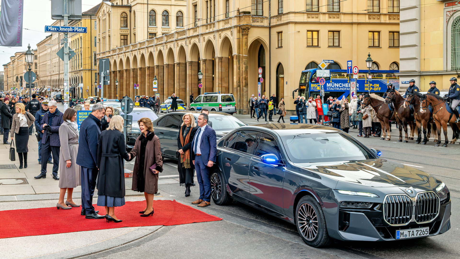 Roter Teppich für Schwedens Königin Silvia: Empfang mit Gebirgsschützen und bayerischer Tracht in München