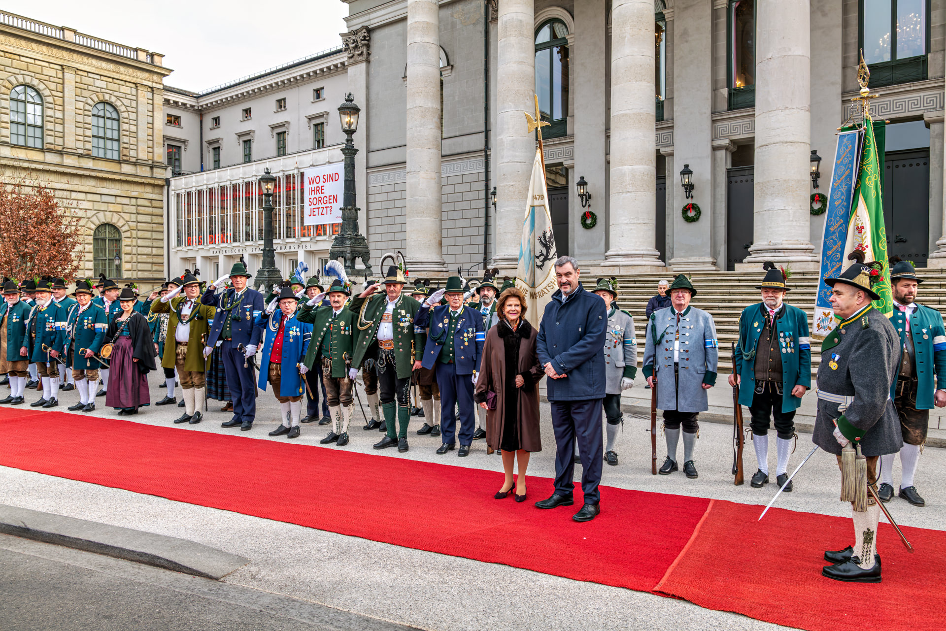 Roter Teppich für Schwedens Königin Silvia: Empfang mit Gebirgsschützen und bayerischer Tracht in München