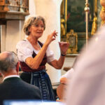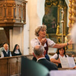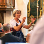 Am Schluss war man sich einig: „Es war ein Musikgenuss der besonderen Art, den die zahlreichen Mitwirkenden geboten haben“. Lob, Preis und Dank war das Motto und unter dieser Überschrift erlebten die Besucher einen bunten Strauß von Barock bis Volksmusik. Unter der bewährten Gesamtleitung von Heide Hauser sangen und spielten der gemischte Chor der Stadtsing- und Musikschule Kolbermoor, der Landfrauenchor Rosenheim, die Chormädlmusi, der Kolbermoorer Mannergsang unter Leitung von Peter Maier und das Bläserensemble Klangblech von Eduard Berger. Regina Berger streifte in ihren verbindenden Worten auf ganz besondere Weise durch die 1200-jährige Geschichte des Klosters Frauenwörth. Ein unglaubliches Gesangsvolumen rauschte durch das ehrwürdige Münster als beim Schlusslied die über 60 Künstlerinnen und Künstler gemeinsam sangen. Zu Beginn hatte die Äbtissin des Klosters, Johanna Maier, OSB bereits darauf hingewiesen, dass der gesamte Benefit dieser Veranstaltung in die Renovierung des Hauses Scholastika fließt und die Vorsitzende des Freundeskreises, Annemarie Biechl, dankte mit herzlichen Worten allen Mitwirkenden für diesen wundervollen „Inselgenuss“.