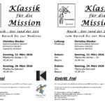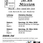 Klassik für die Mission  – Musik – Der Sand der Zeit  – Benefizkonzerte des Kammermusikkreises Rohrdorf in den Pfarrkirchen von Aschau (22.03.2026) und Rohrdorf (29.03.2026)   –  Neuauflage von „Klassik für die Mission“ in 2026.