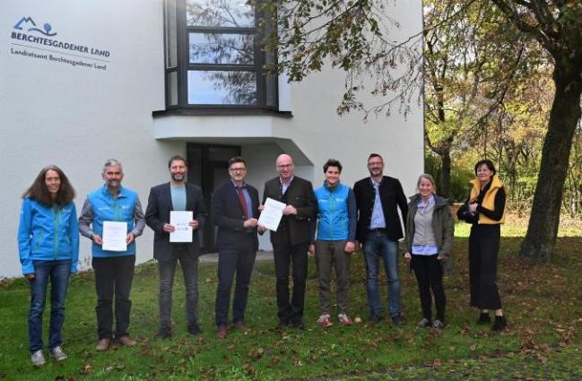 v.l.n.r.: Andrea Heiß und Dr. Roland Baier (Nationalpark Berchtesgaden), Dr. Peter Loreth (Biosphärenregion BGL), Dr. Martin Brunnhuber (Staatl. Berufliches Schulzentrum), Landrat Bernhard Kern, Katharina Rupp (Nationalpark Berchtesgaden), Thomas Öllinger (Staatl. Berufliches Schulzentrum), Meike Krebs-Fehrmann (Biosphärenregion BGL), Sabine Ofner (Staatl. Berufliches Schulzentrum)